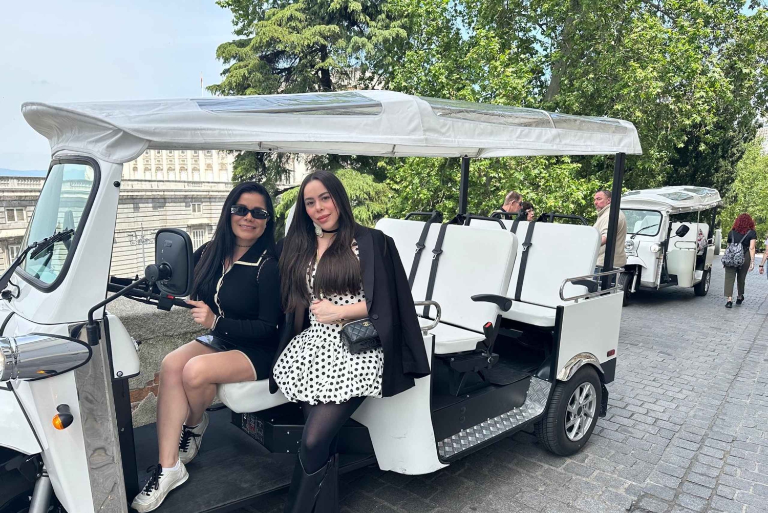 Explora Madrid como nunca antes con un tour en Tuk Tuk eléctrico. Descubre los lugares más emblemáticos de la ciudad, sus tesoros ocultos y sus coloridos barrios con total comodidad. Disfruta de un paseo suave, tranquilo y sostenible en un Tuk Tuk 100 % eléctrico. Ya sea que visites el Palacio Real, recorras el Parque del Retiro o pruebes tapas en La Latina, tu guía local hará que cada tour sea inolvidable con sus interesantes historias y consejos. Perfecto para parejas, familias y amigos, hay disponibles tours temáticos, paseos al atardecer y experiencias personalizadas. Reserva fácilmente online y disfruta de una aventura única al aire libre por el corazón de la capital de España. Ve más, haz muchas paradas y enamórate de Madrid desde el asiento de un Tuk Tuk.Includes