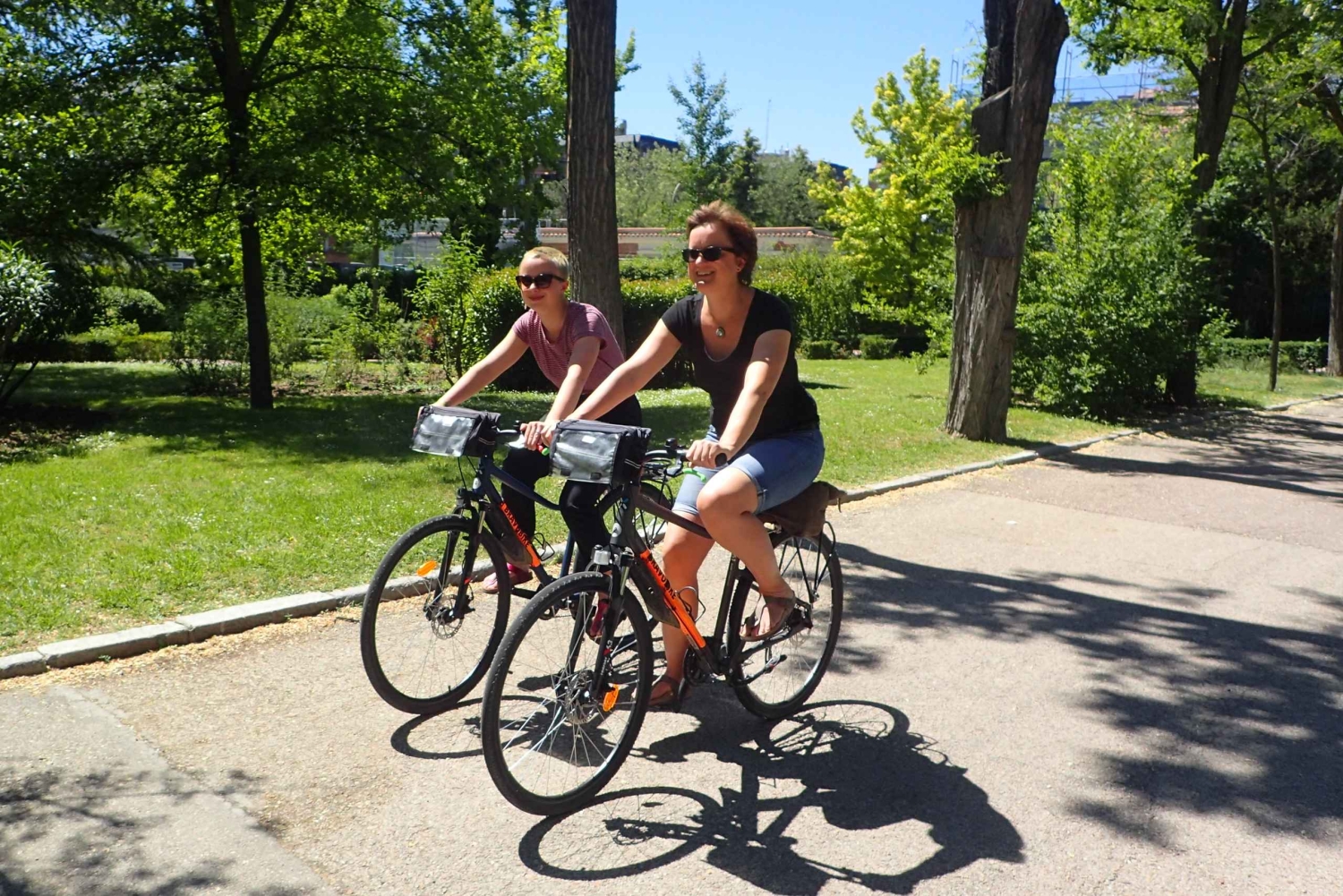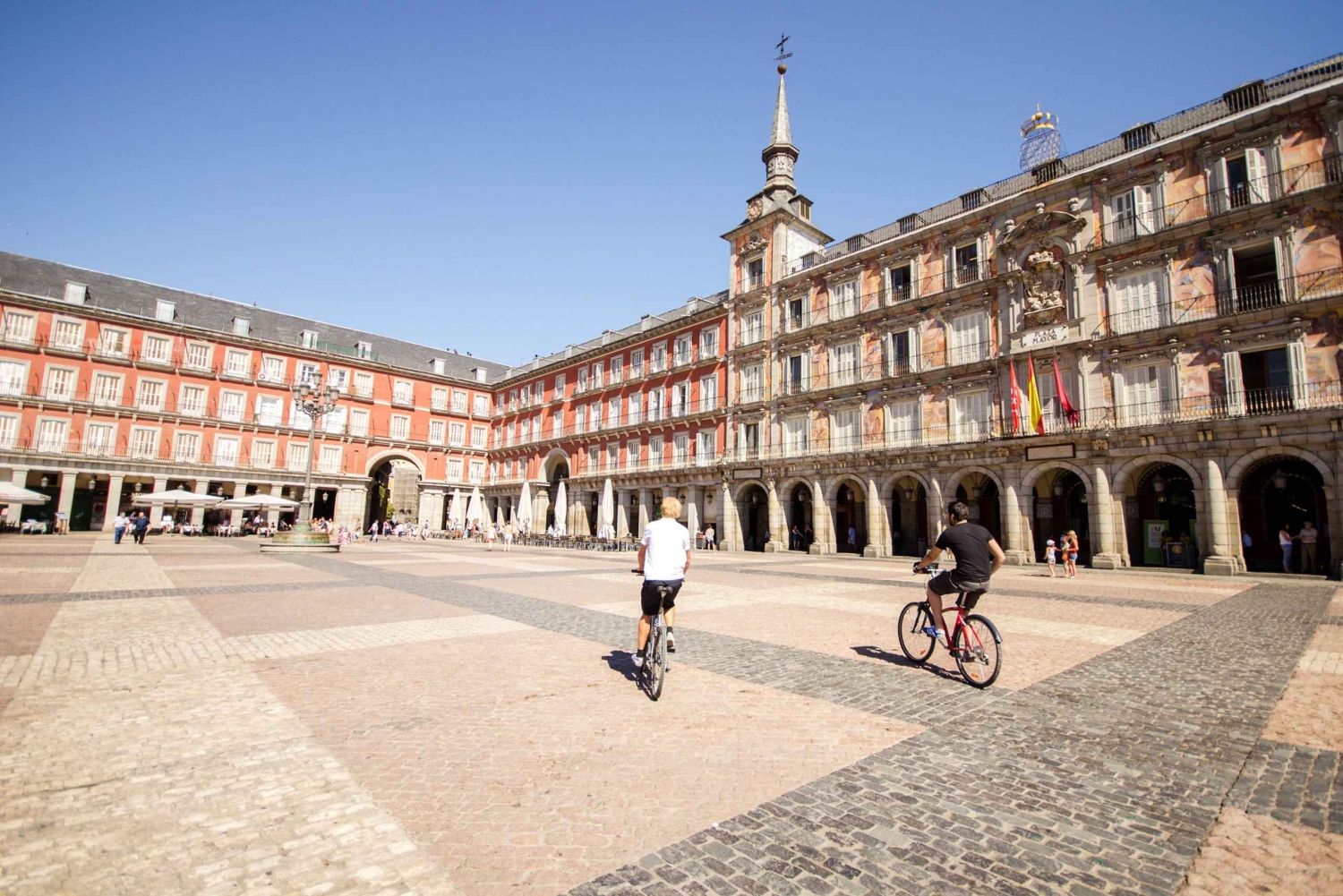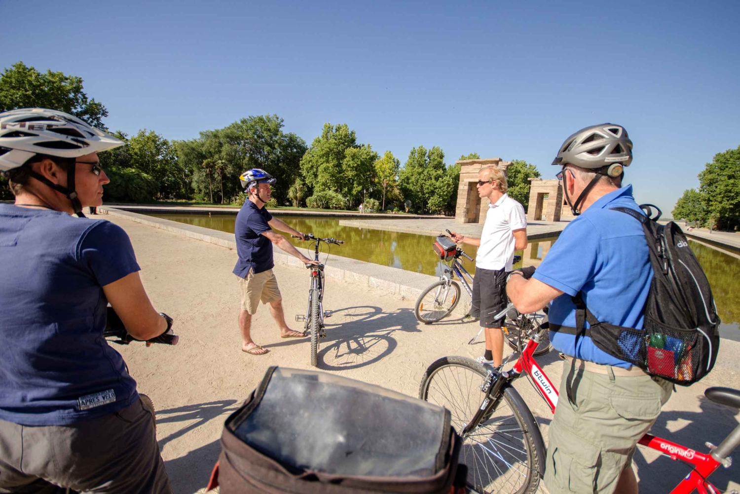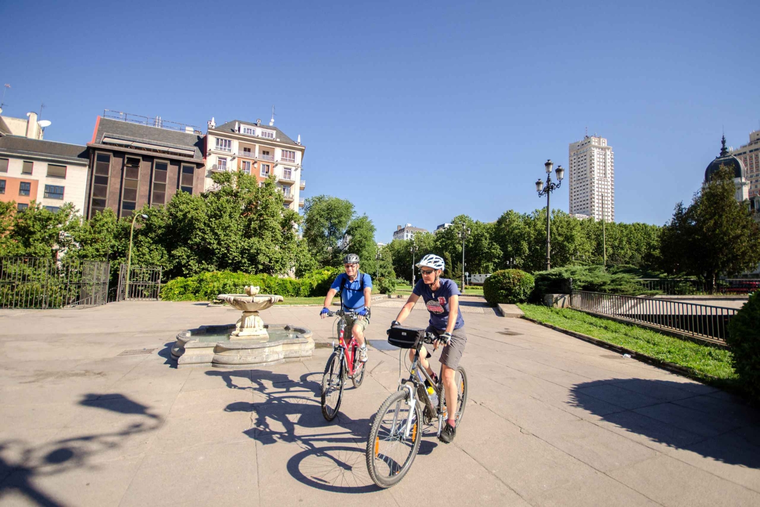 Nauti Madridin nähtävyyksistä, kun ratsastat kaupungin läpi ammattitaitoisesti opastetulla 3 tunnin retkellä. Kierros alkaa toimistostamme, joka sijaitsee keskeisellä paikalla Plaza de Españan metrolinjan 3 varrella. Ensimmäinen pysähdyspaikkamme on egyptiläinen Debodin temppeli. Sieltä jatkamme matkaa ohi Kuninkaallisen palatsin, jatkamme La Almudenan katedraalille, Plaza de la Villalle, San Miguelin markkinoille ja saavumme Madridin sydämeen Plaza Mayor -aukiolle. Plaza Mayorilta ratsastamme keskeiselle maamerkille Puerta del Solille ja jatkamme matkaa Plaza de Santa Analle Madridin kirjallisuusalueen sydämeen. Jatkamme sitten toiselle tärkeälle maamerkille Las Cortesille, jossa sijaitsee Espanjan parlamentin alahuone. Sen jälkeen on loiva ylämäki, joka vie meidät Retiro-puistoon, jossa pysähdymme eri maamerkkien, kuten veneilyjärven, Cristal-palatsin ja keväisen ruusupuutarhan luona. Myöhemmin poistumme puistosta mahtavan Alcalá-portin luota, ja matka jatkuu Calle Serranoa pitkin Recoletos-kadun yli vilkkaille San Antonin markkinoille Chuecan kaupunginosaan. Sen jälkeen kuljemme vilkkaiden katujen halki, ohi Malsañan alueen putiikkien ja kahviloiden ja palaamme sitten takaisin Plaza de Españalle ja toimistollemme. Tätä kierrosta suositellaan pyöräilijöille, jotka tuntevat olonsa mukavaksi pyöräillessään kaupunkiympäristössä. Reitti ei kuitenkaan ole tasainen, ja kierroksella on joitakin loivia ylämäkiä. Nuoremmille osallistujille suosittelemme vähintään 13 vuoden ikää ja hyvää polkupyörän hallintaa. Tämä kierros ei ole tarkoitettu aloittelijoille tai niille, jotka eivät ole säännöllisiä pyöräilijöitä. Tarjoamme 10 euron lisämaksusta mahdollisuuden ottaa mukaan yksi laadukkaista sähköpyöristämme.Includes