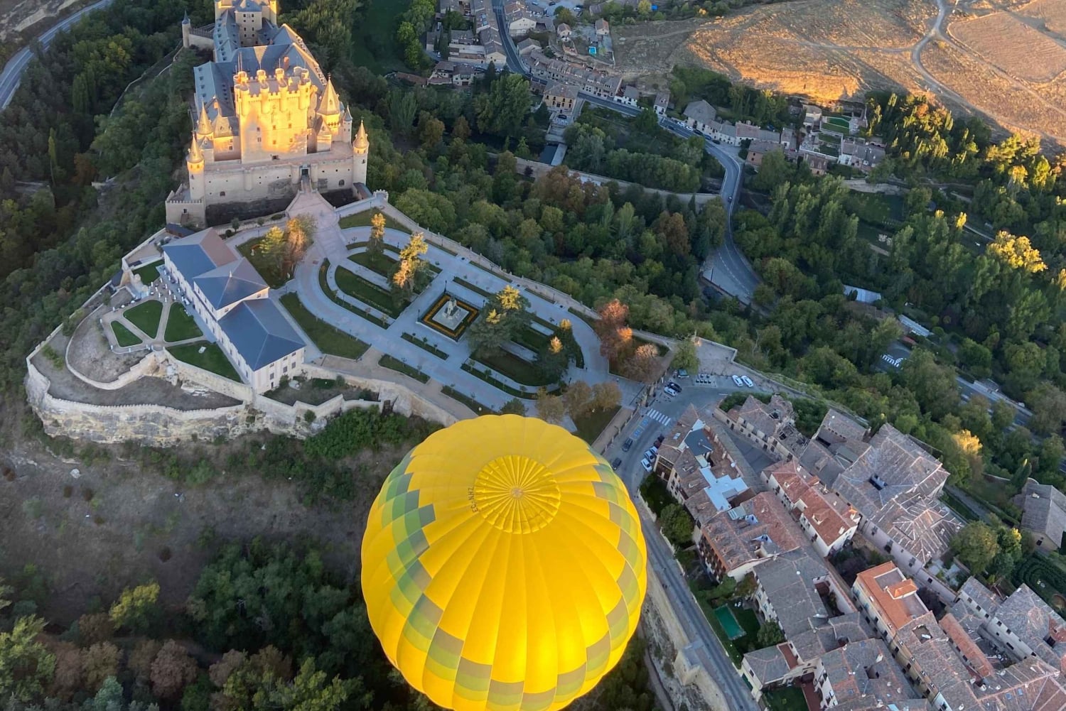 Vaar door de lucht boven Segovia tijdens een luchtballonvaart en geniet van het kleurrijke Spaanse landschap beneden. Geniet van het avontuur in de wetenschap dat u zorgeloos van en naar uw hotel wordt gereden. Nadat je bent opgehaald bij je accommodatie in Madrid, kun je achterover leunen en genieten van de korte rit naar Segovia. Wanneer u aankomt, staat uw piloot klaar om u mee te nemen in de atmosfeer. Houd uw camera gereed om vogelperspectief vast te leggen op het Alcázar, een 12e-eeuws fort gebouwd op een rots. Maak foto's van de oude stad en het oude aquaduct dat in het jaar 118 door de Romeinen werd gebouwd. Luister naar het gesprek van je piloot over de bezienswaardigheden en ontdek waarom Segovia vanwege zijn unieke schoonheid werd uitgeroepen tot Werelderfgoedstad. Na een vlotte landing pauzeer je voor een typisch Spaans ontbijt. Vier het met een glas cava en een vluchtcertificaat dat persoonlijk is ondertekend door uw piloot. Tenslotte transfer naar het centrum van Madrid, of, als je dat liever hebt, blijf en ontdek Segovia en keer op eigen gelegenheid terug naar Madrid.Includes