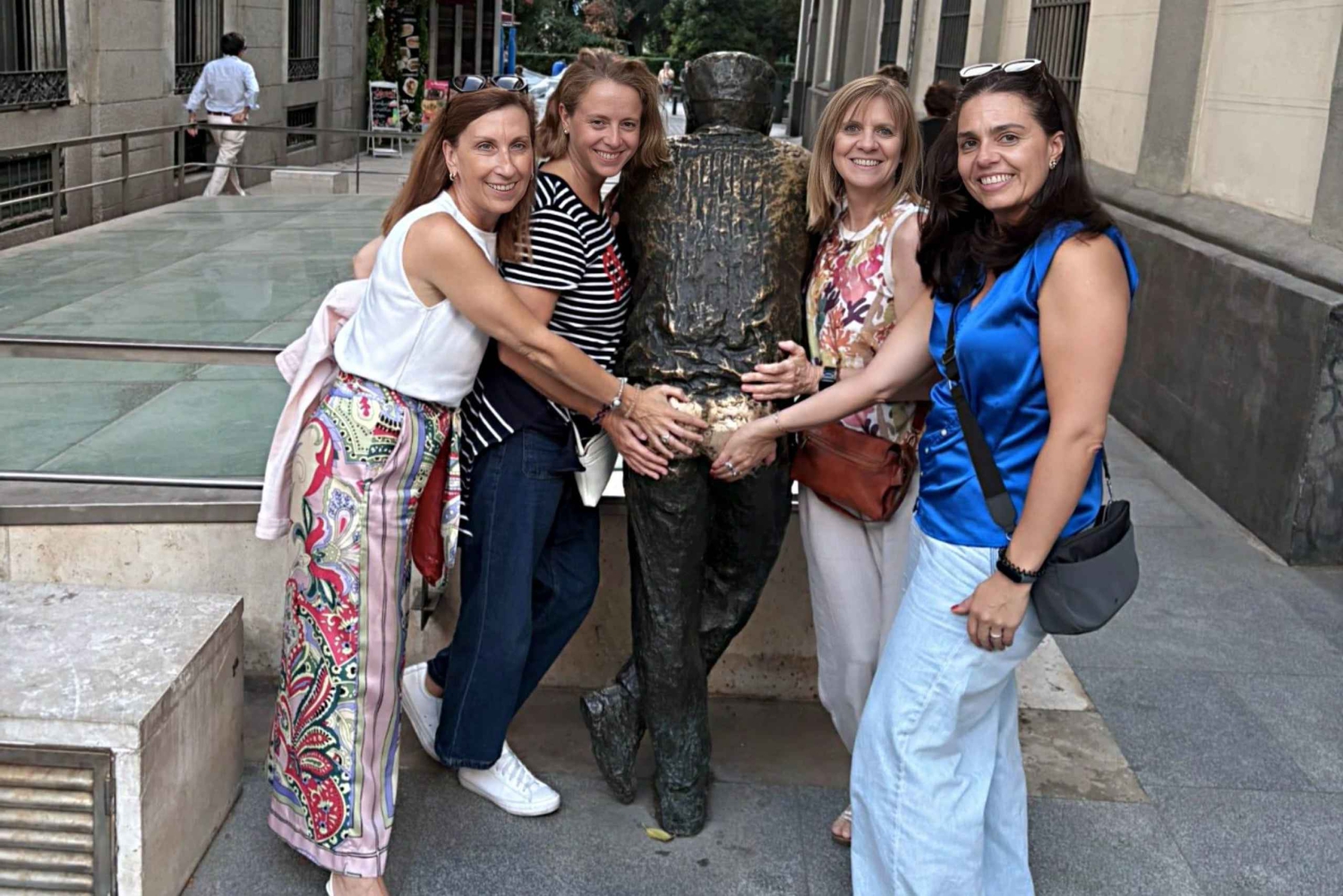 Este 'Grande Tour de Madrid' é a experiência imersiva e completa que você procura para conhecer a capital em profundidade, capturando seus contrastes e atrações. É uma rota panorâmica que te dá uma visão completa da cidade. unindo a Madrid monumental e financeira com o seu coração histórico e popular. É ideal se quiseres capturar a essência total da capital num único passeio: a modernidade do eixo Castellana com o distrito de negócios e o Estádio Santiago Bernabéu, a exclusividade do Bairro de Salamanca, a majestade do Palácio Real e da Plaza Mayor, e a alma vibrante da Gran Vía e da Puerta del Sol. Este passeio vai desde o Paseo del Arte e os bairros nobres até à Madrid de los Austrias e aos seus recantos mais tradicionais, proporcionando-te uma experiência definitiva de todas as facetas que compõem esta cidade incrível. Itinerário: - Fonte de Neptuno: ponto de partida no Paseo del Prado e local de celebração do Atlético de Madrid. - Fonte de Cibeles: o ícone de Madrid e ponto de encontro das vitórias do Real Madrid. - Plaza Colon: uma homenagem à descoberta da América sob a bandeira monumental de Espanha. - AZCA: o bairro de negócios de Madrid, conhecido pelos seus arranha-céus modernos. - Estádio Santiago Bernabéu: o lendário templo do futebol e casa do Real Madrid C.F. - Plaza de la Republica Argentina: uma fonte única que dá lugar às áreas residenciais mais exclusivas. - Bairro de Salamanca: vamos explorar os bairros de luxo, diplomacia e arquitetura senhorial. - La Milla de Oro: a avenida perfeita para compras de grandes marcas de luxo. - Puerta de Alcalá: vamos ver um dos monumentos mais icônicos e queridos da capital. - Parque do Retiro: o grande pulmão verde de Madrid, um oásis de história e natureza na cidade. Edifício da Bolsa: o histórico palácio neoclássico, coração do poder financeiro da Espanha. - Plaza de Santa Ana: o coração literário de Madrid, cercado por teatros e cervejarias famosas. - Congresso dos Deputados: vamos ver a sede da soberania nacional, guardada pelos seus leões icónicos. - Museu Nacional do Prado: vamos explorar o epicentro da arte mundial, um passeio entre os gênios da pintura. - Puerta del Sol: o Quilómetro Zero de Espanha, um ponto de encontro vibrante sob o Urso e o Medronheiro. - Plaza Mayor: vamos entrar no coração majestoso do Madrid de los Austrias. - La Latina: a alma castiça de Madrid, famosa pelas suas tapas e pelo Rastro. - Museu da Catedral de Almudena: visitamos a imponente catedral da cidade, uma mistura de estilos em frente ao palácio. - Palácio Real: vamos admirar a grandiosa residência oficial dos Reis de Espanha. - Mercado de San Miguel: um templo gastronômico com uma estrutura espetacular de ferro e vidro. - Plaza de España: um espaço monumental renovado com o icônico monumento a Cervantes. - Gran Vía: vamos percorrer a grande avenida de Madrid, famosa pelos seus teatros, cinemas e edifícios históricos.Includes