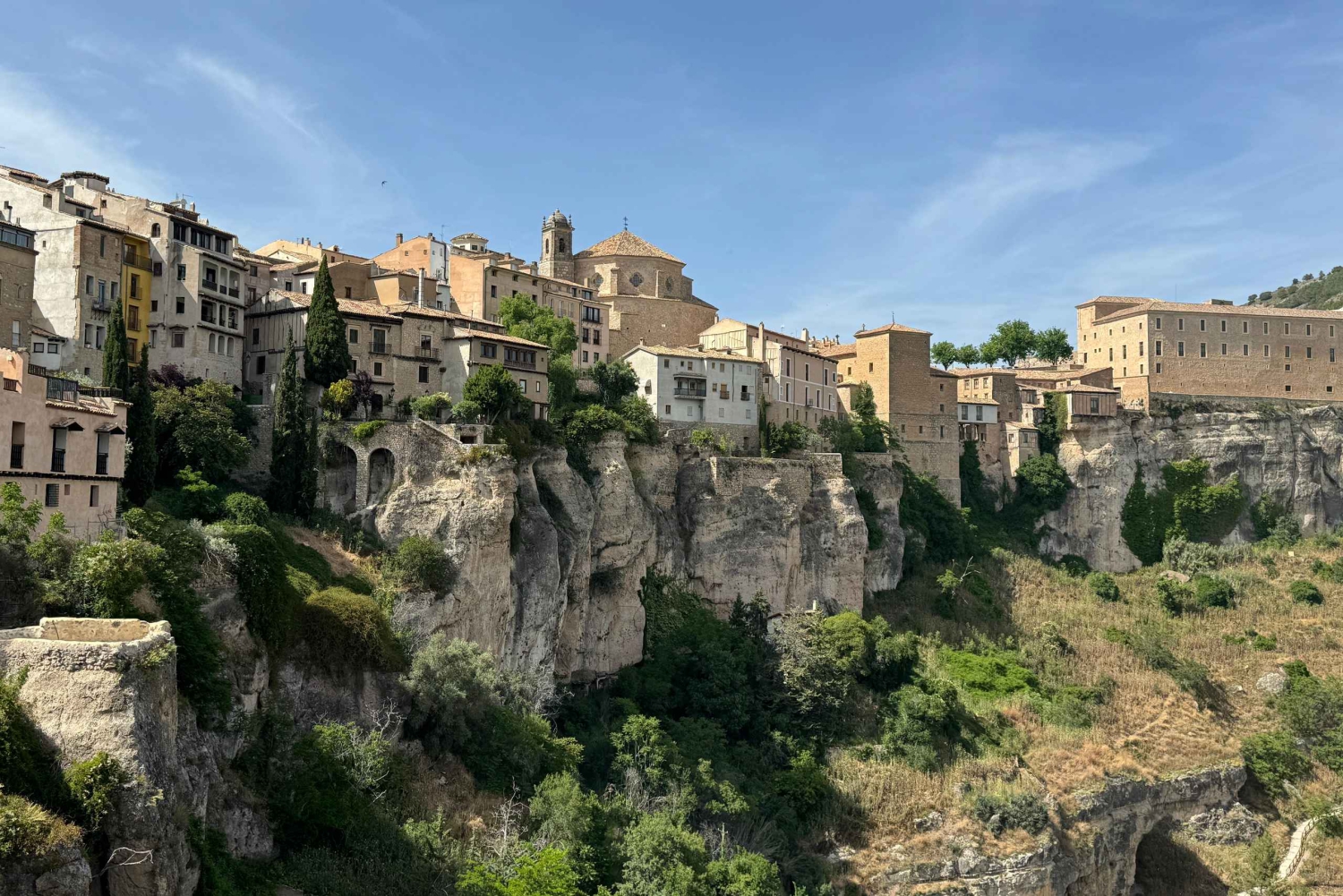 Följ med på en privat rundtur och upptäck magin i Cuenca, en världsarvsstad som ser ut som något ur en dröm. De berömda 'hängande husen' trotsar gravitationen och svävar över tomrummet som om de vore surrealistiska penseldrag på en naturlig duk. Cuenca är mer än historia; det är ett hörn av underverk där forntida och moderna sammanflätas i en symfoni av kullerstensgator och hisnande panoramabilder. Vi börjar vårt äventyr med att korsa den ikoniska San Pablo-bron, varifrån vi får en unik utsikt över staden med dess färgglada fasader som verkar smeka himlen. Vår rundtur tar oss till Museum of Spanish Abstract Art, inrymt i ett av de emblematiska hängande husen, där avantgardekonst går i dialog med tradition. Vi förlorar oss i den förtrollade labyrinten av smala gator och pittoreska torg som leder oss till Plaza Mayor och den majestätiska gotiska katedralen, med en historia som går tillbaka till dess ursprung som moské på 1100-talet. Därifrån tar vi oss upp till slottskvarteren, utforskar resterna av den gamla fästningen och passerar under den imponerande Bezudobågen, som väktare av ett medeltida förflutet. Varje hörn av Cuenca är en visuell dikt, en plats där tiden verkar stå stilla för att låta dig andas in dess skönhet. Denna upplevelse kommer att vara unik, anpassad till din egen takt, fri från rusning och frånkopplingar, där varje steg kommer att vara en intim konversation med staden. Upplev Cuenca med Agiday Travel, på en privat tur som är utformad just för dig, där historia, konst och natur sammanflätas för att erbjuda dig en oförglömlig resa.Includes